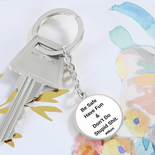 Be Safe. Have fun & Don't Do Stupid Shit. Love Mom| Circle Key Chain- Teenager Key Chain, Sweet Sixteen Birthday